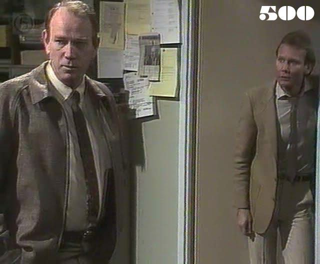 EPISODE 499Broadcast on Channel 5 Saturday 03 April 1999 04:40 Tragedy strikes when Brian Lowe comes to set Ann and Meg free from the booby-trapped building.![]() Meg ~ Elspeth Ballantyne Judy ~ Betty Bobbitt Joan ~ Maggie Kirkpatrick Ann ~ Gerda Nicholson Myra ~ Anne Phelan Reb ~ Janet Andrewartha Len ~ Maurie Fields Pixie ~ Judy McBurney Bobbie ~ Maxine Klibingaitis Marlene ~ Genevieve Lemon Joyce ~ Joy Westmore Sam ~ Robyn Gibbes Sarah ~ Nell Johnson Lou ~ Louise Siversen Frances ~ Wanda Davidson Alice ~ Lois Collinder Brian Lowe ~ Mathew King Det. Insp Rouse ~ Paul Karo Chris Sutton ~ Gregory Ross William Coleby ~ Hu Pryce Matt Delany ~ Peter Bensley Ray Proctor ~ Alex Menglet Officer Slattery ~ Dorothy Cutts Tammy ~ Gloria Ajenstat Insp. Grace ~ Terry Gill Matt is credited as "Delaney", but it has become "Delany" for the next episode. There are references to Dot and Lizzie at Sarah Higgins' "trial". | As Phillip's body is taken away, Inspector Rouse asks Chris what they were doing at Mrs Lowe's: Lowe has apparently disappeared into thin air. Pixie suggests Marlene should try racing cockroaches instead of frogs. Myra announces that Sarah Higgins' "trial" is to begin and sends Pixie to get her "client". Lowe tapes a message from Ann and Meg after telling them that he'd just killed a friend of their's. Pixie invites Sarah to the rec room to watch television and when she refuses, she says Myra wants her and she'd better come. When Sarah tries to leave, Myra indicates for the others to stop her |