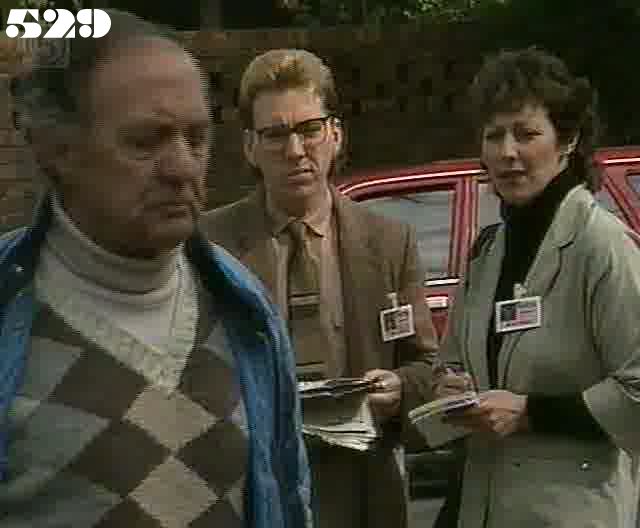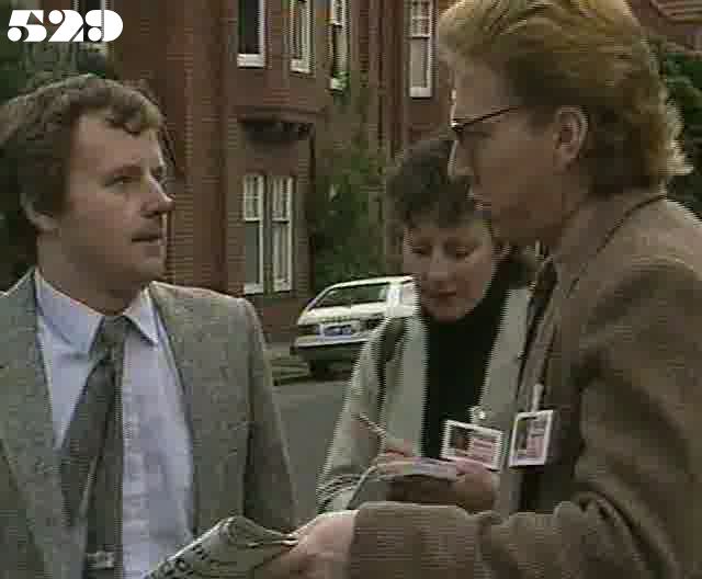 EPISODE 529Broadcast on Meridian Tuesday 09 December 1997 23:40; Channel 5 Sunday 18 July 1999 04:45. Anita tells Myra that she can't bear to contemplate life outside her order. A defiant Dennis protests his innocence in front of an angry mob, but later cries in Meg's arms when he reveals his beating.![]() Meg ~ Elspeth Ballantyne Judy ~ Betty Bobbitt Joan ~ Maggie Kirkpatrick Ann ~ Gerda Nicolson Myra ~ Anne Phelan Dennis ~ Nigel Bradshaw Marlene ~ Genevieve Lemon Lexie ~ Pepe Trevor Joyce ~ Joy Westmore Anita ~ Diane Craig Lou ~ Louise Siversen Alice ~ Lois Collinder Matt ~ Peter Bensley Geoff ~ Les Dayman Frank ~ Trevor Kent Det Insp Grace ~ Terry Gill Mother Mary Helen Sexton ~ Carmel Millhouse Rex Doyle ~ Kirk Alexander Detective ~ Gerard Matte Desk Officer ~ Bob Halsall Uniformed Policeman No 1 ~ Steve Hutchinson Uniformed Policeman No 2 ~ Ian Cuming Neighbour ~ Ron Little Newsman ~ Ian Gilbert Woman No 1 ~ Rosemary Barnes Woman No 2 ~ Irene Hewitt Man ~ Malcolm Sim Elderly Gent ~ James Clarke Youth ~ Jeff Kovski Bartender ~ Rob Constable Customer ~ Neville Stonehouse | Marlene decides to skip dinner after using the scales her mother brought in for her. Joan appears to believe in Dennis's guilt, and even Joyce is dubious that Inspector Grace would have charged Dennis without some evidence (but of course that is exactly what he has done). Inspector Grace puts pressure on Dennis to confess and shows him a pair of tights that were found stuffed down the back seat of his car. [Incidentally, the writers never bother to attempt any explanation of how they got there, or whose tights they are...] Ann is concerned that the Department seem to be more worried about their image than the welfare of their staff: she asks Meg to take Dennis some civilian clothes so he doesn't have to appear in court in uniform. Myra makes Alice give her buyup back to the women to share amongst themselves. Dennis is fingerprinted, has his mugshot done