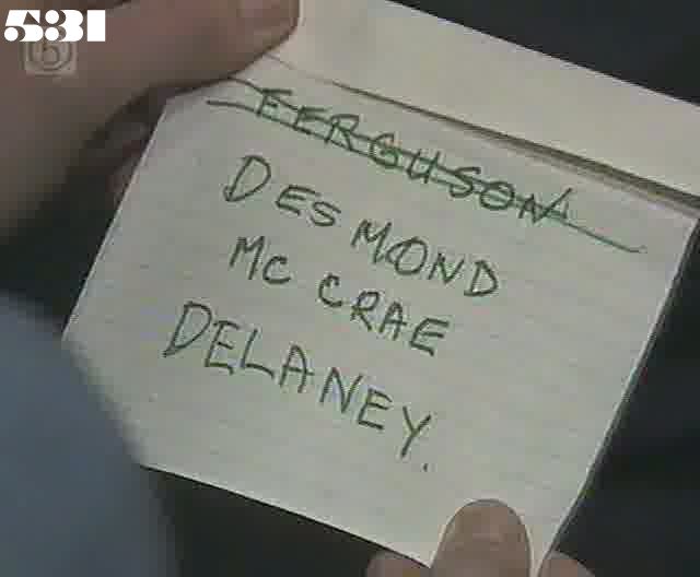 Lexie uses a colourful phrase "We'll be in more poo than a Warraby (?) duck" Dennis seems to have had a haircut in the middle of a working day. Meg fluffs a line and refers to the inquiry as an "inquest". One of the backgrounders is called "Gina". Lexie appears in mugshot credits, with (as Martin pointed out in the Digest) a hairstyle she didn't have when the picture was taken... |