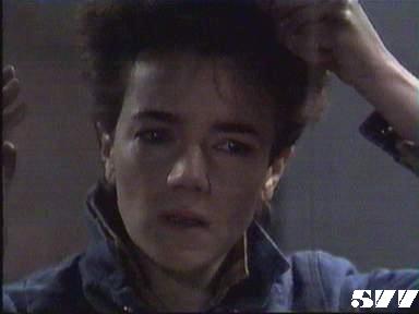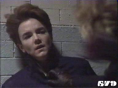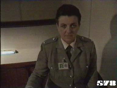 The shots representing Reb's memory of being beaten at Blackmoor are wierd. The uniform seems to be a navy boiler suit, and whoever it is hitting her, it clearly isn't Cynthia Leach, at least to judge from the flicked back blonde hair