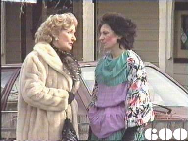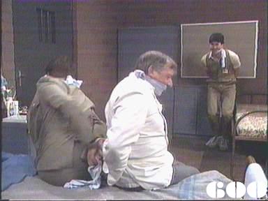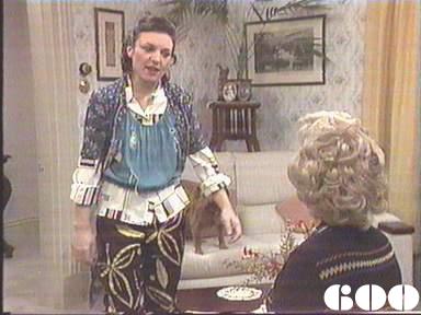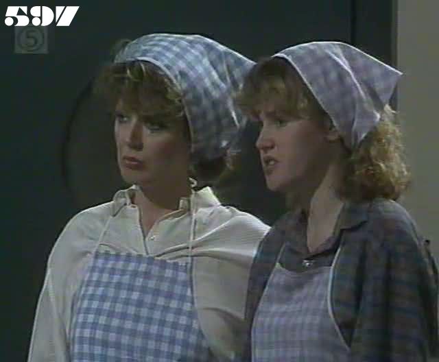 Most tactless comment in this episode has to be Lou to Joyce: "Bonzer wig! Expensive?" Mark Caffery comments "Jackie Woodburne and Pepe Trevor try to hide their amusement throughout Governor Moran's opening speech to the women as Trevor misjudges a jump onto the chair in the recroom at the beginning of the scene!" |