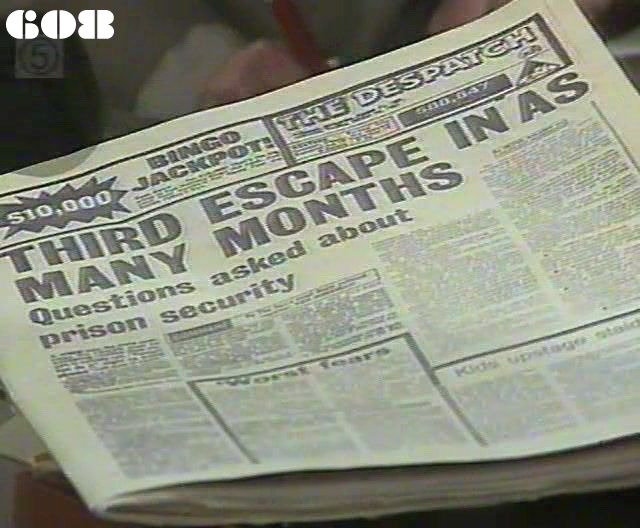 EPISODE 608Broadcast on Channel 5 Saturday 22 April 2000 04:40. The deputy governor is demoted to officer and the escapee finds refuge in a barn. Bassinger enlists his son's help.![]() Meg ~ Elspeth Ballantyne Joan ~ Maggie Kirkpatrick Ann ~ Gerda Nicolson Joyce ~ Joy Westmore Jessie ~ Pat Evison Nancy ~ Julia Blake Rita ~ Glenda Linscott Julie ~ Jackie Woodburne Lou ~ Louise Siversen Lexie ~ Pepe Trevor Bob ~ Peter Adams Mervin ~ Ernie Bourne Steve ~ Peter Hayes Dan ~ Sean Scully Janet ~ Christine Earle Vicki ~ Rebecca Dines Harry Bassinger ~ John Frawley Amelia Bassinger ~ Barbara Burder Gary Bassinger ~ Chris Stevenson Flora Jenkins ~ Moira Claux Officer Radcliffe ~ Marion Dimmick James Dwyer ~ James Condon Newsreader ~ John Print | Bob tells the police that the last time Lou escaped she headed for Adelaide (to call on Reb's mother, presumably?) so he would bet she's going in the opposite direction. Joan confidently predicts that Bob's mistake in not transferring Lou will lose him the Deputy Governorship. Lexie drums up some business for the forthcoming drugs delivery with Vicki (a prisoner we've never seen before