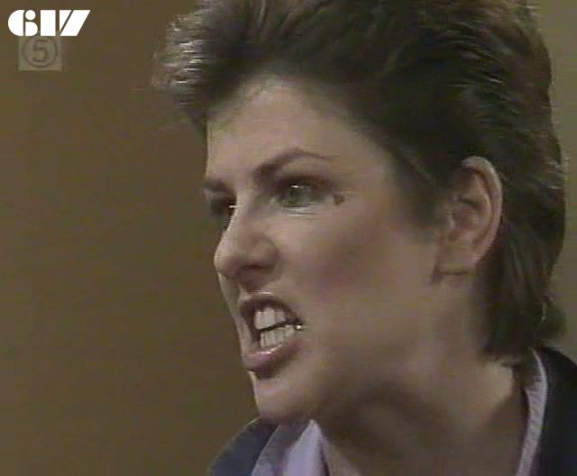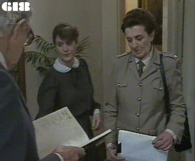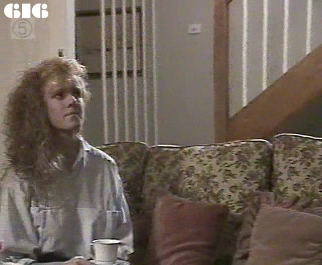 EPISODE 620Broadcast on Channel 5 Saturday 03 June 2000 4:40![]() Meg ~ Elspeth Ballantyne Joan ~ Maggie Kirkpatrick Ann ~ Gerda Nicolson Nancy ~ Julia Blake Rita ~ Glenda Linscott Julie ~ Jackie Woodburne Lexie ~ Pepe Trevor Alice ~ Lois Collinder Jessie ~ Pat Evison Kath ~ Kate Hood Janet ~ Christine Earle Bob ~ Peter Adams Vicki ~ Rebecca Dines Amy Ryan ~ Penny Ramsay Amelia Bassinger ~ Barbara Burder Taps ~ Valma Pratt Steve ~ Peter Hayes Tom Harley ~ Vince Gill Judge O’Grady ~ George Dixon Harry Bassinger ~ John Frawley Gas Company Man ~ Frank Sheenan The actress playing Amelia Bassinger does not seem to be the same as before: I suspect she is actually Judith Roberts. Joan remarks "the Board was light on Lumsden" - another previously unmentioned prisoner, presumably from D block? It sounds odd for both Jessie and Ann to use "Judge" as if it were Mr O'Grady's real Christian name rather than a job title. Nora and Barnhurst are both mentioned in dialogue. Marie Trevor should have stuck to her role as producer: the second half of this episode is simply badly written, and the direction and dodgy camerawork make matters even worse. | Ann tells Joan she should have allowed Steve's visit and makes her phone him to tell him he can visit in future. Steve tells his mother he's in love with someone at Wentworth. She assumes (not having seen any of them) that he means one of the officers: she is appalled to be told it is actually with a prisoner and tells him he is throwing his life away. Janet is dragged to the rec room to be questioned as a possible lagger, but she manages (surprisingly easily) to convince Rita that she is innocent. Rita manages to work out that if Kath has been passing on information about things that happened before she arrived, then someone must have told her about it. She asks if anyone has been talking to Kath and Nancy has to admit she has mentioned the radio controlled car to Kath, but she is sure she didn't say anything about the cocaine. Joan lords it over Meg, citing rules and subsections to justify petty confiscations from the women's cells. Meg warns Joan that if she is using an informer she is playing a dangerous game, which could put the life of the prisoner concerned in question. Taps visits a shopping mall in a lurid red ensemble hoping to attract the attention of Harry Bassinger. Even though Taps seems to have left the hat topped with a neon sign reading "FOLLOW ME" at home, Bassinger can be seen lurking behind a tie rack observing her every move. Alice holds Kath while Rita bashes her. Nancy tries to intervene, but this only alerts Meg to the situation. Meg takes Rita and Alice to the Governor's office along with Lexie, who was acting as lookout. Rita and Alice are sent to solitary and Lexie is given extra cleaning duties. Harry Bassinger follows Taps home: she has now topped off the red ensemble with a bright yellow umbrella just in case he is at risk of losing her. It doesn't say much for her street wisdom that she is actually completely unaware that she is being followed. Ann wants to talk to Steve before he sees Julie: she asks him if anyone could have got the details used against Julie at her parole hearing from reading his thesis. Kath tells Bob his presence in Wentworth puts her in greater danger. Bassinger's wife begs him to go on holiday to get away from the publicity generated by the latest escape: this seems to indicate that she knows very well of his involvement in the previous murders of escapees and worries he is already tracking down Jessie. Nancy apologises to Lexie for getting them all into trouble and they make up over discussing names for Lexie's baby. Kath asks Ann for a transfer, but Ann refuses as she knows there is overcrowding in other prisons. Ann's refusal hardens Kath's attitude and she warns Ann she will have to defend herself in any way she knows in future. Steve shows Julie the engagement ring (to a sleazy jazz cocktail piano accompaniment). Lexie is just about to get heavy with Kath when Janet happens along, but Kath rebuffs Janet's offer of help. Ann advises Bob to consider a transfer himself for his own good as well as Kath's. Bassinger calls the gasman and reports a gas leak at the house where Jessie is staying, so that he can find out the time the engineer is expected to call. Kath refuses to let Nancy play the Good Samaritan and tells her to go away and leave her alone. When Ann leaves Wentworth to visit Dan in hospital, Joan makes a point of asking for a contact number just in case there are any decisions to be made that she can't be trusted to handle on her own. Bassinger gets into Taps' house through the back as the gasman calls at the front, and overpowers Tom. Joan reminds Lexie that this time she's in prison for a long stretch, so she won't stand for any insolence from her. Bassinger makes Jessie tie Tom up and pulls a knife to kill Jessie. With one bound, Tom is free, overpowers Bassinger and Bassinger is taken away. Tom has to pretend to talk to the inaudible off-screen police officers not catered for in the script. Bob makes his decision: he tells Ann and Kath |