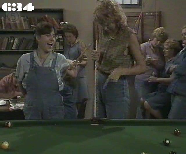 When Lexie does a flashy underarm shot at the biliard table, the ball surpisingly goes straight into the pocket right next to her. For the rest of the scene both her and Rita seem to be surpressing a fit of the giggles |