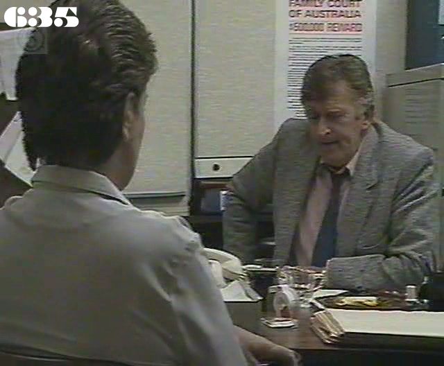 Inspector Grace seems to be working for the Family Court of Australia, to judge from the poster behind him |