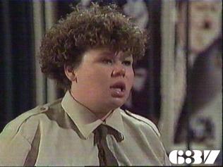 EPISODE 636Broadcast on Channel 5 Sunday 30 July 2000 04:40. Nancy finally comes up against Rita and the knives are out.![]() Ann ~ Gerda Nicolson Joan ~ Maggie Kirkpatrick Meg ~ Elspeth Ballantyne Joyce ~ Joy Westmore Mervin ~ Ernie Bourne Marty ~ Michael Winchester Rodney ~ Philip Hyde Rita ~ Glenda Linscott Lexie ~ Pepe Trevor Alice ~ Lois Collinder Nancy ~ Julia Blake Kath ~ Kate Hood Lorelei ~ Paula Duncan Roach ~ Linda Hartley Merle ~ Rosanne Hull-Brown Janet ~ Christine Earle Jenny Hinton ~ Kereen Ely-Harper Delia ~ Desiree Smith Newscaster ~ Jennifer Keyte Muster includes the expected names, but also "Thomas"? | Janet tells Merle that Rita has torn her comics. Marty catches Kath clearing up the comics and they both convince Merle that Rita wasn't to blame, though Marty is really pushing it to expect her to believe her comics were ripped up by Vandals from Outer Space. Jenny lets Joan know she blames her for her father's death |