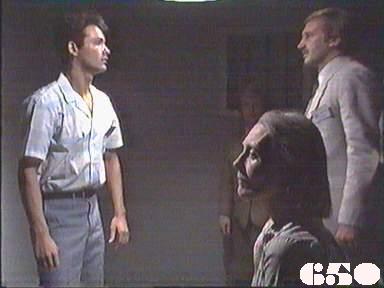 EPISODE 650Broadcast on Channel 5 Sunday 17 September 2000 04:40. Nancy has a difficult decision to make about her son. A new inmate is transferred from C-block, much to the horror of Rita and her supporters.![]() Ann Reynolds ~ Gerda Nicolson Joan Ferguson ~ Maggie Kirkpatrick Meg Morris ~ Elspeth Ballantyne Delia Stout ~ Desiree Smith Marty Jackson ~ Michael Winchester Mervin Pringle ~ Ernie Bourne Joyce Pringle ~ Joy Westmore Rita Connors ~ Glenda Linscott Lorelei Wilkinson ~ Paula Duncan Alice Jenkins ~ Lois Collinder Nancy McCormack ~ Julia Blake Merle Jones ~ Rosanne Hull-Brown Kath Maxwell ~ Kate Hood Vicki McPherson ~ Rebecca Dines Lexie Patterson ~ Pepe Trevor Spider Simpson ~ Taya Stratton Dan Moulton ~ Sean Scully Det Woods ~ Ian Walker Peter McCormack ~ Steve Bastoni Det. Neill ~ Eric McPhan The broadcast credits then listed another eight characters not in this episode - see the section UNCREDITED for episode (649) above. | The fire alarm sounds while the women are showering causing a minor panic, with Delia idiotically trying to stop the women going outside. She says the fire has been contained and it was only a dormitory in C block that had been set alight. Meg tells Marty about being frozen in fear during a riot. Dan reads a thank you letter to the women from one of the fire victims: Rita proposes they follow up with a charity telethon (inspired by Bob Geldoff and Band Aid). Nancy is questioned by the police and is forced to lie about Peter to protect him. Dan tries to persuade Ann to support Rita's idea for the telethon. Nancy tells Rita the truth about who killed her husband and asks for advice about what to do. Spider introduces herself to Kath by karate chopping her in the back of the neck |