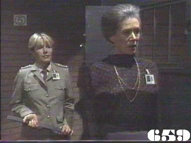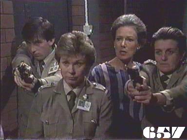 EPISODE 657Broadcast on Channel 5 Saturday 14 October 2000 04:40. Lorelei is back in Wentworth after voluntarily giving up Zoe to the Hoskings. A hitwoman arrives to kill Liza. [alias Lisa]![]() Meg ~ Elspeth Ballantyne Joan ~ Maggie Kirkpatrick Ann ~ Gerda Nicolson Joyce ~ Joy Westmore Rita ~ Glenda Linscott Alice ~ Lois Collinder Kath ~ Kate Hood Lorelei ~ Paula Duncan Merle ~ Rosanne Hull-Brown Rodney ~ Philip Hyde Delia ~ Desiree Smith Wendy ~ Julieanne Newbould Lisa ~ Terrie Waddell Spider ~ Taya Stratton Pamela Madigan ~ Justine Saunders Zoe Wilkinson ~ Asby Redward June Hosking ~ Brenda Addie Ivan Hosking ~ Cliff Wood Frieda Lewin ~ Johannah Sonerberg Thomas Gilmore ~ Graham Duckett Mal Winner ~ Brendan O'Brien Constable Williams ~ Matthew Barker The newspaper front page shows Lorelei's mugshots Joan puts "Fisher, Murray, Young" on a charge for having concealed contraband in their cells. | Kath quizzes Merle about Wendy and the reactions of women and staff to her. Lisa dyes her hair (and becomes another actress |