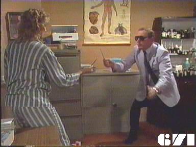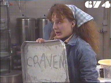 EPISODE 674Broadcast on Westcountry Thursday 28th August 1997 23:45; Channel 5 Saturday 16 December 2000 04:40. Joan attempts to transfer Meg, Joyce and Marty away from Wentworth, but a strike is threatened. Kath is set up and she loses her trusteeship.![]() Meg ~ Elspeth Ballantyne Joan ~ Maggie Kirkpatrick Joyce ~ Joy Westmore Rita ~ Glenda Linscott Alice ~ Lois Collinder Kath ~ Kate Hood Lorelei ~ Paula Duncan Merle ~ Rosanne Hull-Brown Rodney ~ Philip Hyde Marty ~ Michael Winchester Spider ~ Taya Straton Lisa ~ Terrie Waddell Spike ~ Victoria Rowland Brumby ~ Sheryl Munks Vicki ~ Rebecca Dines Mervin ~ Ernie Bourne Doctor Luther ~ Douglas Bennett Doctor Klein ~ Roger Boyce Officer Slattery ~ Dorothy Cutts Cabbie ~ John Geros UNCREDITEDGate guardMarty's absurd "gate duty" is a strange allocation of resources: surely there are more useful jobs for officers than standing by a locked security gate? | The women look for a replacement for Merle's mouse, armed with brooms and pillowcases. Spider and Vicki confront Kath for lagging on her for bringing goods in, but she brazens it out and denies it was anything to do with her. Alice tells Rita and Brumby that if they are escaping, she's going with them. Joan tells Meg and Joyce they will be transferred to Barnhurst, and Marty will go to Smithton: they will be replaced by Blackmoor officers. Spider plots to get undermine Kath by having Merle transferred: she plans to convince Merle that Craven's ghost has come back to get her. Joyce goes to the kitchen in tears to tell Mervin they won't be working together any more, allowing Spike and Lisa to overhear and report back to the women. Rita and Brumby frame Kath by stealing goods from the staff room and planting it in her cell, using Spike to get the goods past Marty. Vicki gets Mervin to leave the kitchen while Spider frightens Merle by showing her a kitchen tray with CRAVEN written on it in flour |