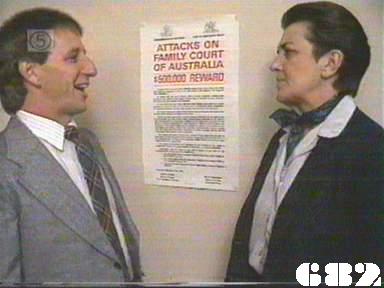 EPISODE 682Broadcast on Westcountry Thursday 25th September 1997 23:50; Channel 5 Saturday 13 January 2001 04:45. Kath contemplates Ron Willis' deal to get Marty and Spike. Rita arranges a meeting for Alice and Harry to discuss his past.![]() Meg ~ Elspeth Ballantyne Joan ~ Maggie Kirkpatrick Ann ~ Gerda Nicolson Rita ~ Glenda Linscott Alice ~ Lois Collinder Kath ~ Kate Hood Merle ~ Rosanne Hull-Brown Rodney ~ Philip Hyde Marty ~ Michael Winchester Spider ~ Taya Straton Spike ~ Victoria Rowland Brumby ~ Sheryl Munks Vicki ~ Rebecca Dines Harry Grosvenor ~ Mike Bishop Judd ~ Stuart Conran Ron Willis ~ David Ravenswood Willie Beecham ~ Kirsty Child Susan Lewis ~ Rosie Tonkin Mrs Simpson ~ Judith Roberts Office Manager ~ Steve Payne When Joan storms out of the "Family Court" building, the logo on the door reveals it to be a Grundy production office. The Grundy logo from the final credits has been inset in this image Both Rodney and Merle have new haircuts, perhaps indicating a break in filming? | Brumby is amazed that Spike is so indifferent about Marty giving up on helping her and works out that it's because she has started to feel something for him. Harry pays up to Spider and asks her to arrange a meeting with Alice alone. Rita comes out of hospital and immediately goes over to Kath's table to warn her she has broken the rules by stealing and lying to her mates, pointing out that it is Merle who has suffered the most. Joan fails at another job interview (at the Family Court? |