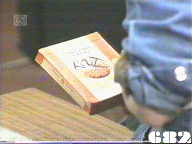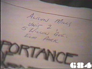 Thanks to Anthony for pointing out the enigmatic message written in felt tip on the cardboard box on the storeroom shelf behind Billy's head