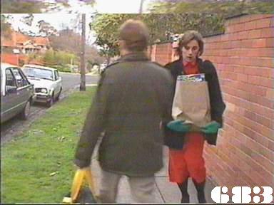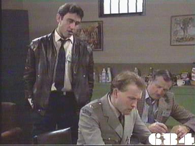 EPISODE 684Broadcast on Westcountry Thursday 2nd October 1997 23:45; Channel 5 Saturday 20 January 2001 04:40. Rita and Alice are cleared of trouble over the men, and Kath Maxwell makes her escape, leaving Merle behind. Joan threatens Dwyer unless he helps her.![]() Meg ~ Elspeth Ballantyne Joan ~ Maggie Kirkpatrick Ann ~ Gerda Nicolson Joyce ~ Joy Westmore Rita ~ Glenda Linscott Alice ~ Lois Collinder Kath ~ Kate Hood Merle ~ Rosanne Hull-Brown Rodney ~ Philip Hyde Marty ~ Michael Winchester Spider ~ Taya Straton Spike ~ Victoria Rowland Brumby ~ Sheryl Munks Stud ~ Peter Lindsay Billy ~ Glennan Fahey James Dwyer ~ James Condon Det Waters ~ Stephen Hutchinson Alison Mills ~ Fiona Corke Miss Towne ~ Effie James UNCREDITEDOfficer Hagen ~ Christine AndrewThe (non-speaking) Van Driver Another interior decor disaster | Kath calms Merle down by talking to her about the "holiday" they are taking soon when she comes back to their cell in a state of agitation. Rita and Alice are trapped in the storeroom by a cell search and have to pretend to be tying the men up in self defence, but they refuse to say what happened. Marty protests his innocence to Meg and says he doesn't believe that Spike went back on drugs voluntarily: he tells her about the woman who bumped into him and planted the drugs in his bag. Rodney thanks Kath for her information. As Ann is questioning Alice and Rita in the storeroom, Merle bursts in and admits responsibility. Even though Merle's story doesn't make much sense, Ann thinks there must be some link with Lorelei's rape and decides the Blackmoor men must go. No drugs are found in the cell search, but traces of heroin are found in Marty's locker. Brumby presses Kath about the timing of the escape, but Kath claims her contact has told her to tell no-one. Meg asks Rita for help in clearing Marty. Rita phones Lisa and passes on information she has overheard when another officer told Rodney about a drama rehearsal at the Ivydale Temperance Hall. Marty is arrested for possession of drugs. Lisa follows Rodney and tapes his awful acting |