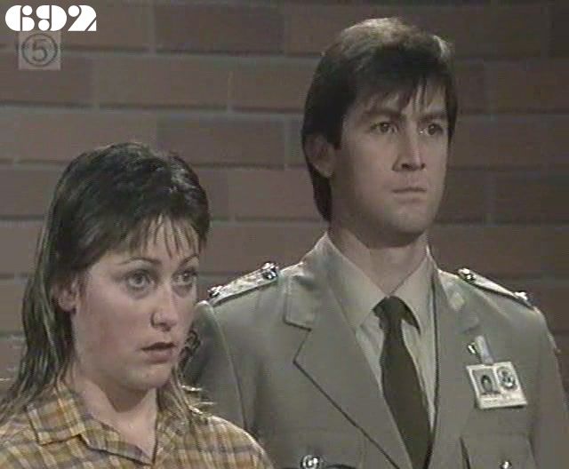 EPISODE 692Broadcast on Westcountry Thursday 30th October 1997 23:45; Channel 5 Sunday 11 February 2001 04:40. Rita is caught in the middle of a theft and returned to Wentworth. Joan receives the shock of her life when confronted by a living corpse.![]() Meg ~ Elspeth Ballantyne Joan ~ Maggie Kirkpatrick Ann ~ Gerda Nicolson Joyce ~ Joy Westmore Rita ~ Glenda Linscott Alice ~ Lois Collinder Kath ~ Kate Hood Merle ~ Rosanne Hull-Brown Rodney ~ Philip Hyde Marty ~ Michael Winchester Lisa ~ Terrie Waddell Brumby ~ Sheryl Munks Vicki ~ Rebecca Dines Tom Lucas ~ John McTernan Dr Lunn ~ Denzil Howson Mr Hudson ~ Charles Tingwell Harry Grosvenor ~ Mike Bishop Det Thorn ~ Peter Curtin Det Jones ~ Alan Knoepfler Off. Radcliffe ~ Marion Dimmick UNCREDITEDWatch out for the driver of the police carAlso uncredited: Man holding up door for Joan, Woman working in the finance company OTHER CHARACTERSHelen StephensOfficer Radcliffe does not appear in this episode | Rita drives to the insurance offices. Meanwhile, Joan does the lockup as normal, but checks her watch every now and again. Rita scales a wire fence outside the insurance building. Joan pretends to have discovered that Rita is missing and raises the alarm. Rita climbs a roof ladder to the top of the building and forces open a hatch. The alarm goes off immediately, so she dashes to the safe and opens it, and throws a chair through a window to make it look as though the loot has been thrown out to an accomplice. The police arrive within a few minutes and catch Rita inside the building. Joan sits in on Rita's interrogation back at Wentworth: the police tell her they will be checking up on her known associates, but the interview has to be suspended until the following day when Rita collapses. Joan sneaks into the infirmary and wakes Rita to check that she hid the money as arranged. Dr Lunn tells Ann that Rita is very ill and refuses to let the police question her further. When Ann finds out that the police found fingerprints on the car other than Rita's, she asks the doctor to leave as she has "something to explain" to the police. Marty tells the women about Rita's escape and recapture. Mr Hudson arrives and tells Ann the reforms may have to be postponed. Joan checks up on Rita again to make sure she didn't say anything to give the plan away. Joan leaves work and makes it as far as the door of the insurance offices, but is scared off when two strange men hold the door open for her. Merle makes a card for Rita's birthday. Kath tries to raise the women's spirits for Rita's sake: Alice suggests they might be able to persuade Tom to bring in his motorbike for Rita to ride. Joan admits to Rita that she didn't pick the money up, so Rita threatens to get someone else to collect it if she won't. Alice takes Rita outside in a wheelchair to see her birthday surprise